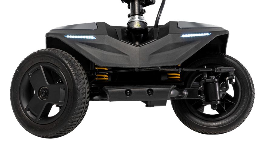 EZ Turn – Pride's patented, tight-turning technology, allows this 4-wheel scooter to turn like a 3-wheel scooter! With a 38.39" turning radius, users will navigate tighter environments with ease.