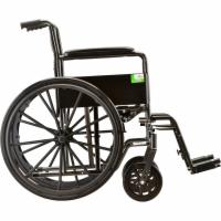The NOVA Steel Wheelchair in 18" width (5080S) comes equipped with fixed full-length arms and swing away footrests. It also features dual axle positions for quick seat height conversion and flame retardant black vinyl upholstery. The 24" rear wheels allow the user to self propel. There are industry compatible accessories available for this product.